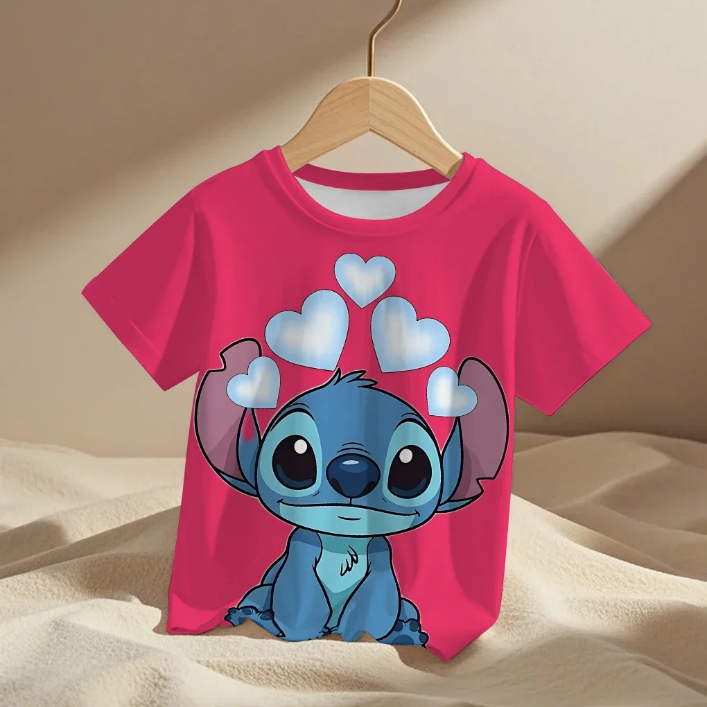 2025 Summer Disney Stitch 3d T Shirts Short Sleeve Children Boys Girls Stich Tops Cartoon Casual Clothes 1-14 Years Old T-Shirts