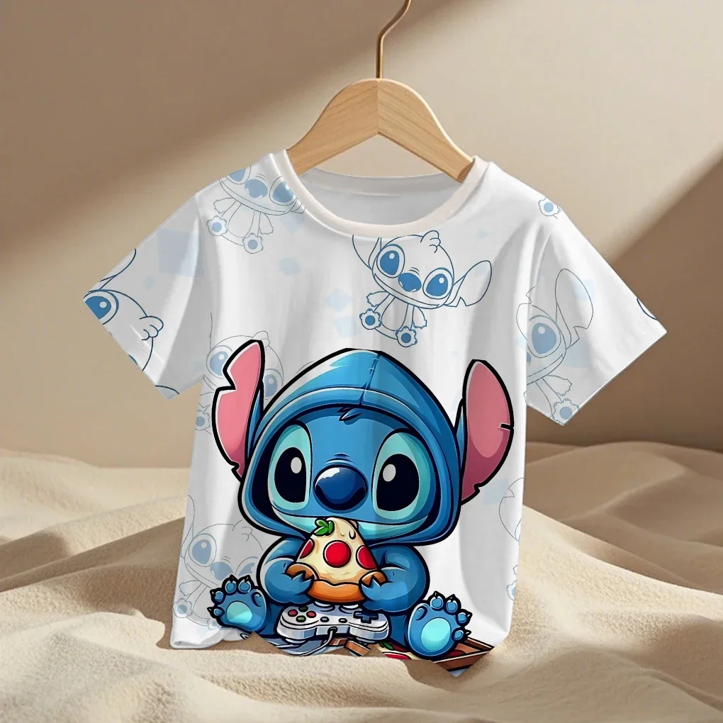 Home Kids Shirts 2025 Summer Disney Stitch 3d T Shirts Short Sleeve Children Boys Girls Stich Tops Cartoon Casual Clothes 1-14 Years Old T-Shirts
